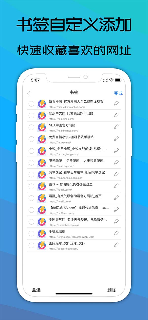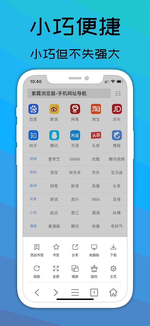 全屏浏览器小巧,使用便捷,但仍然不失强大功能,全屏、横竖屏切换、下载管理、主页自定义、多窗口切换、书签自定义......