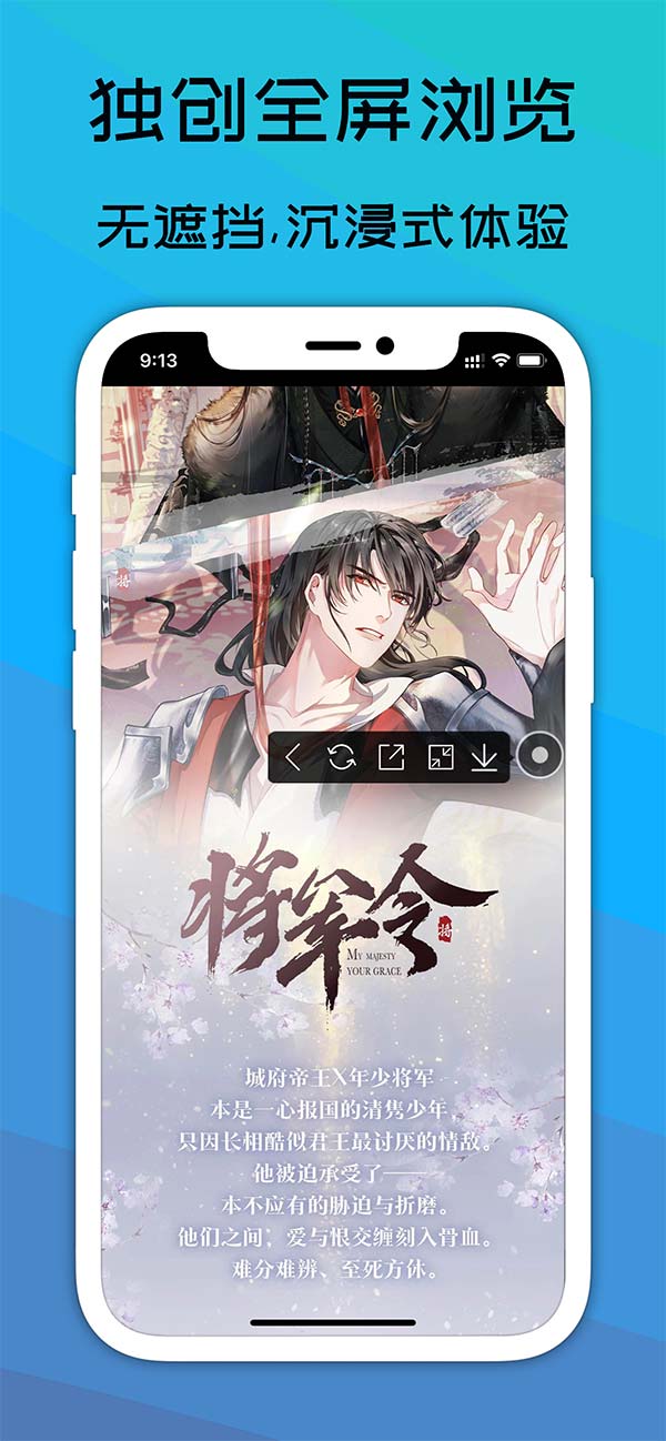 独创的全屏模式:无遮挡浏览,沉浸式用户体验。竖屏下全屏模式会显示刘海,横屏下全屏无刘海显示。