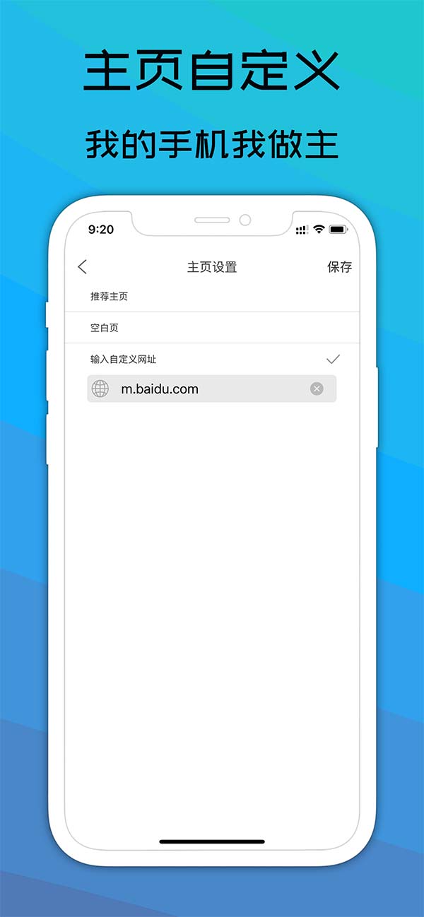 主页自定义: 默认推荐主页为手机网址导航,用户可自定义设置为空白,或者自定义网址,浏览器的主页功能依照用户的设置跳转到相应的网址